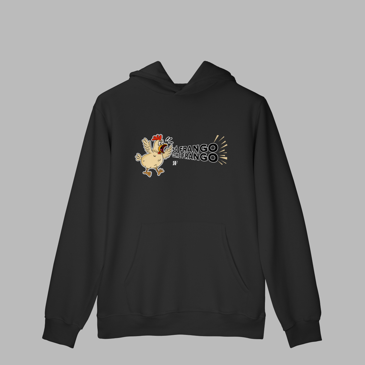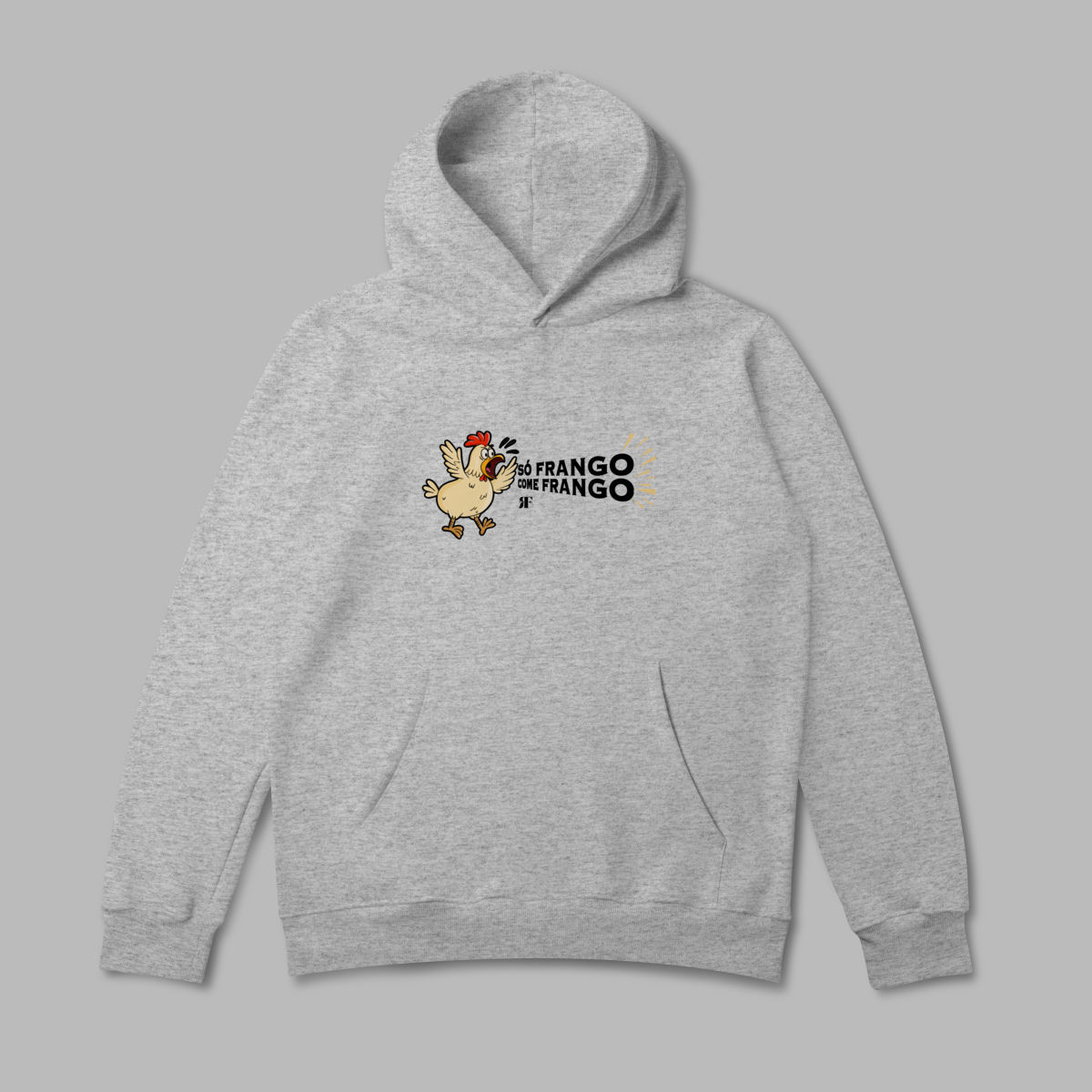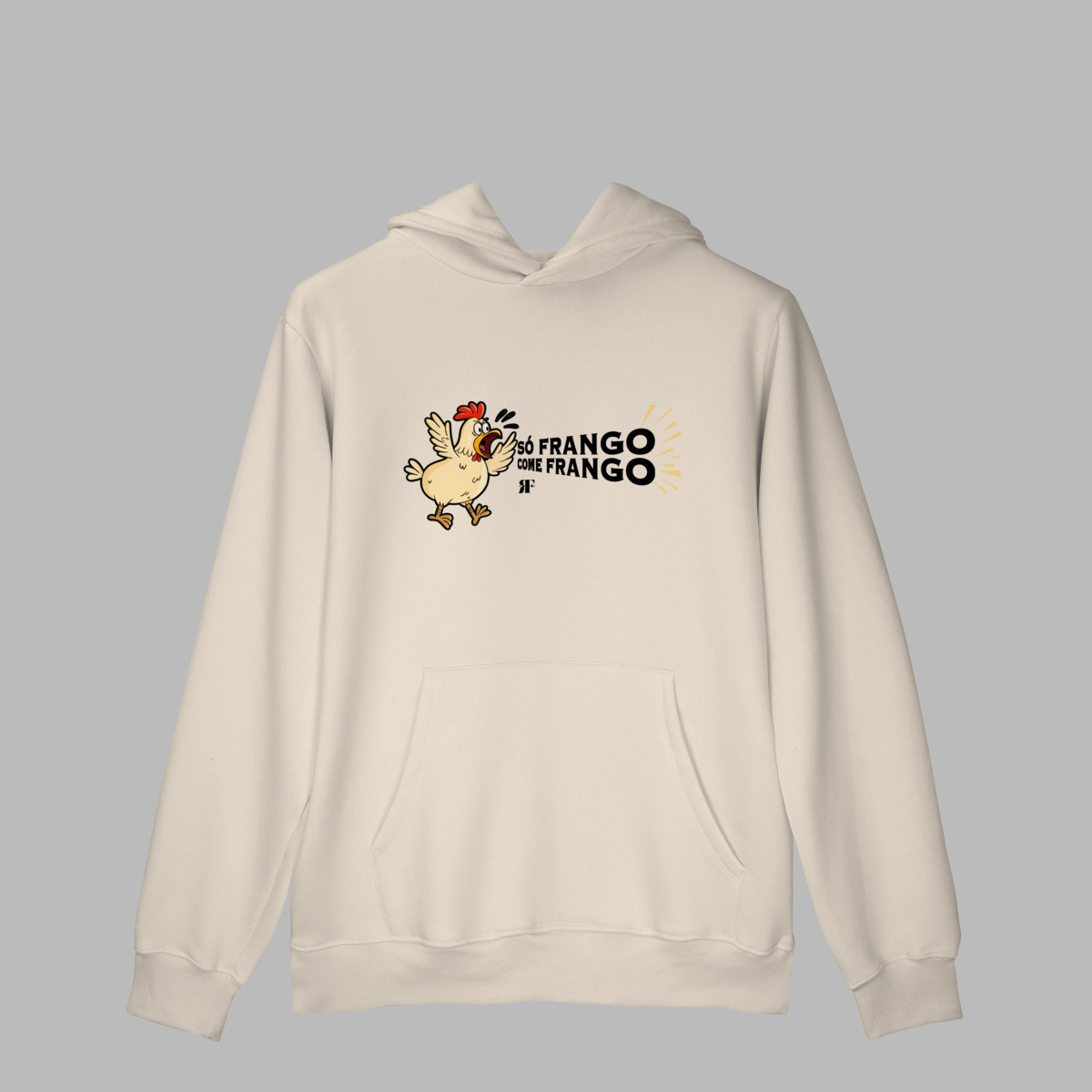 A camiseta “Só Frango Come Frango” traz uma estampa irreverente que brinca com o estereótipo de que só se ganha músculos comendo frango. Ideal para quem aposta em alimentação consciente, sustentável ou simplesmente gosta de desafiar o senso comum com bom humor. Moletom macio e confortável, perfeito para dias frios, treinos ou para looks casuais. Design moderno e atemporal, com toque premium e alinhado a um lifestyle vegano.