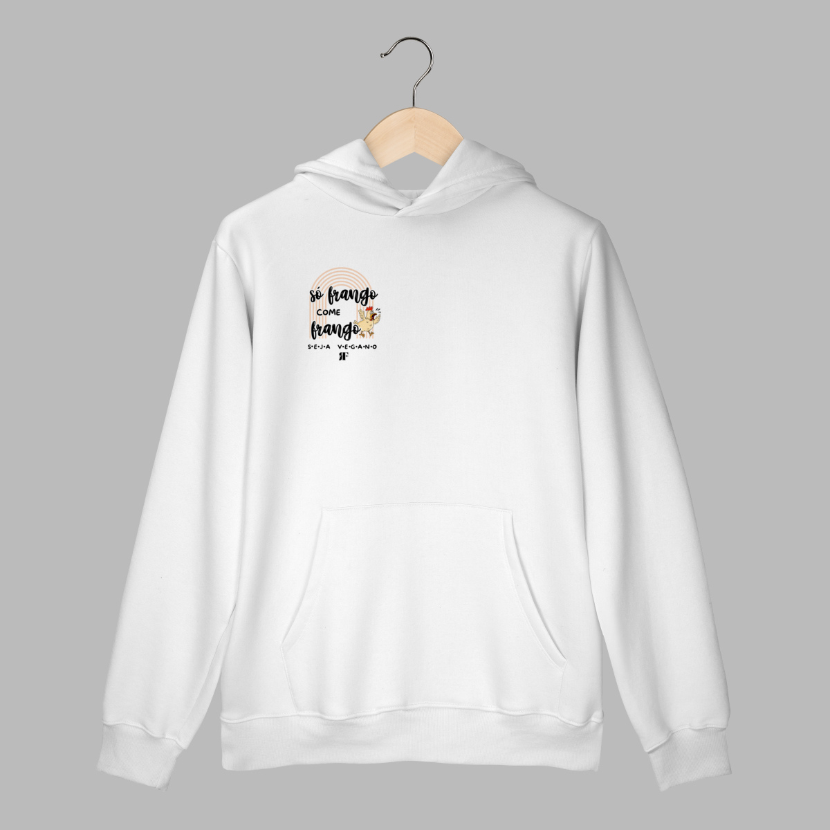 A camiseta “Só Frango Come Frango” traz uma estampa irreverente que brinca com o estereótipo de que só se ganha músculos comendo frango. Ideal para quem aposta em alimentação consciente, sustentável ou simplesmente gosta de desafiar o senso comum com bom humor. Moletom macio e confortável, perfeito para dias frios, treinos ou para looks casuais. Design moderno e atemporal, com toque premium e alinhado a um lifestyle vegano.