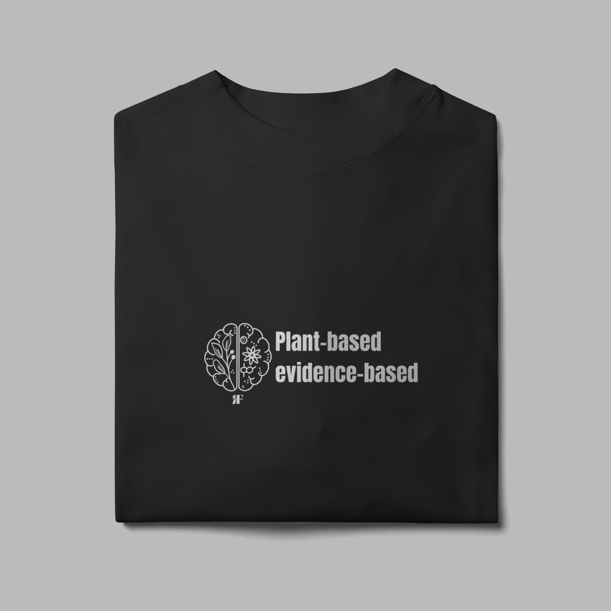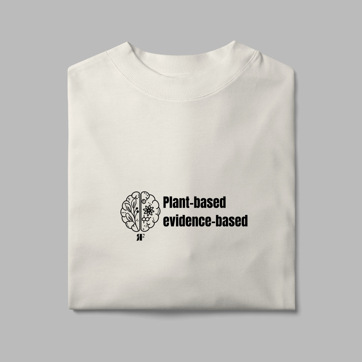 A estampa “Plant Based, Evidence Based” traduz em poucas palavras um estilo de vida alinhado à ciência. Ela mostra que é possível unir ética, saúde e evidências científicas. Com design moderno e tipografia marcante, é a escolha perfeita para quem quer vestir informação e atitude. Corte amplo e confortável que garante liberdade de movimento para treinos ou momentos de lazer.