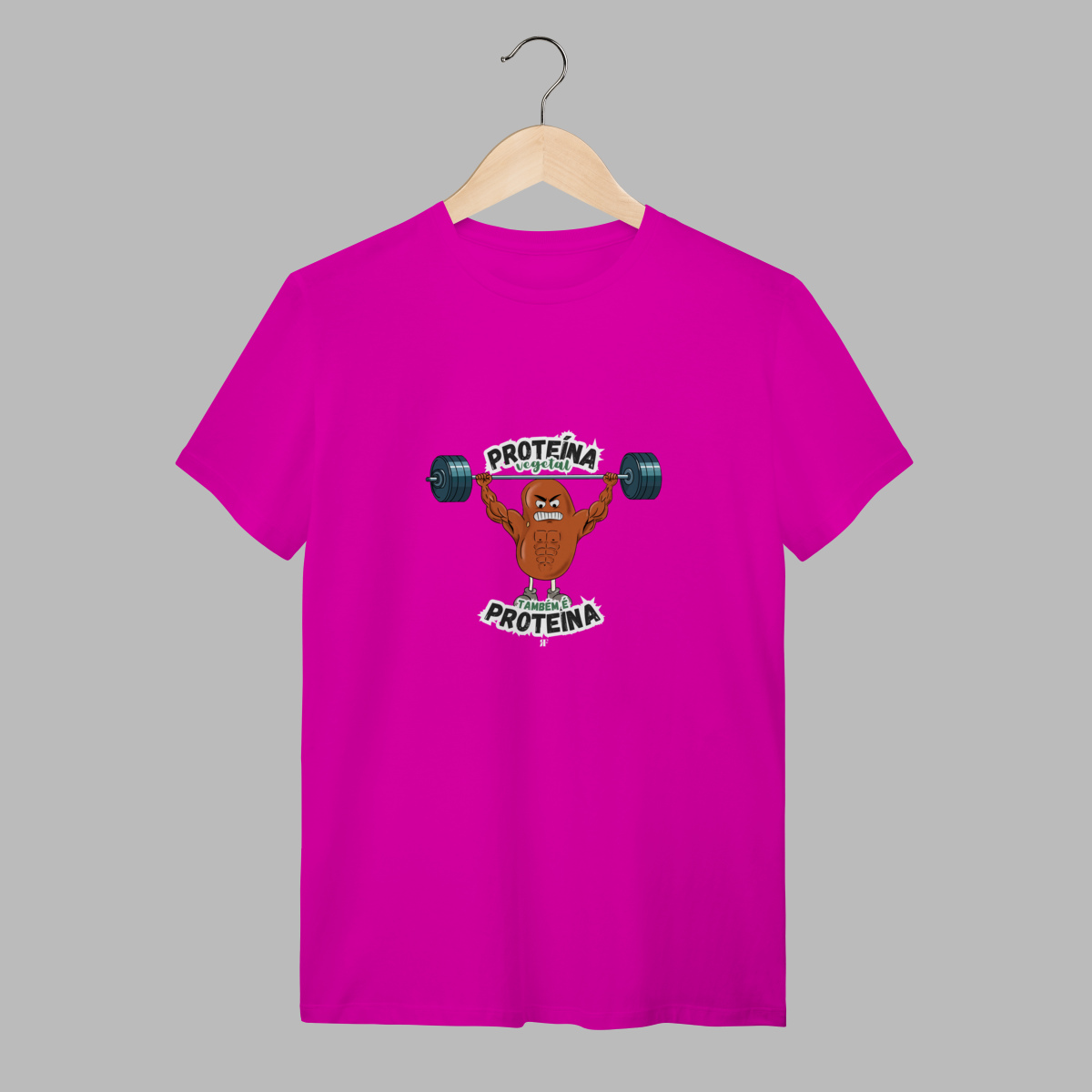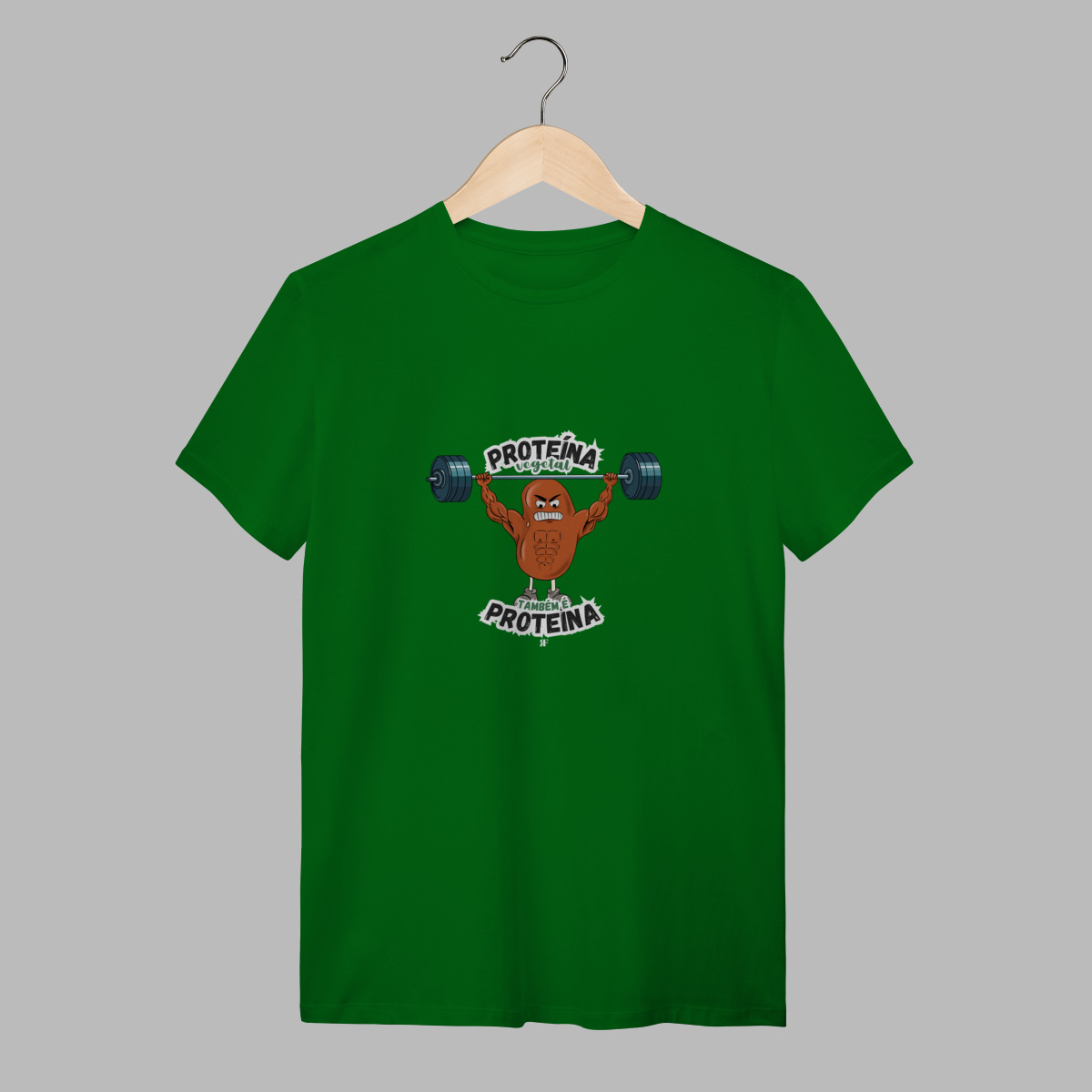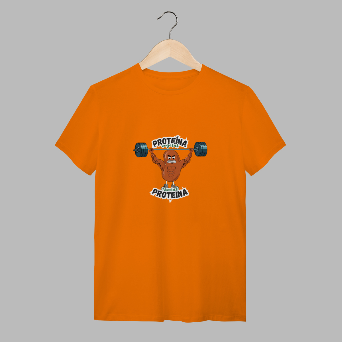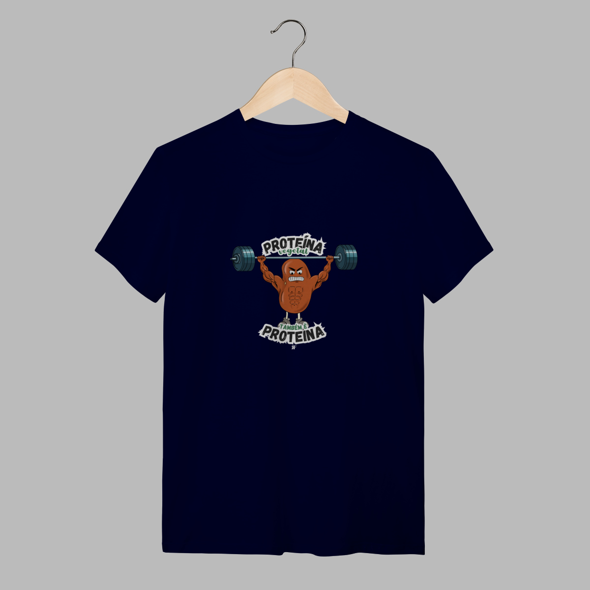 Camiseta divertida e cheia de atitude com estampa exclusiva de um feijão musculoso – perfeito para quem leva nutrição e treino a sério, mas não perde o bom humor.