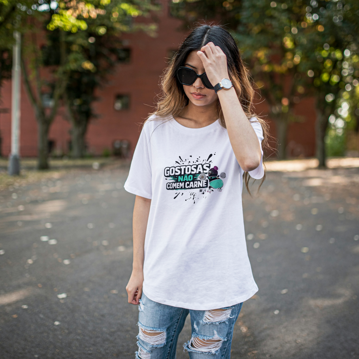 A camiseta Feijôa é para quem gosta de estilo com atitude. Com a estampa exclusiva “Gostosas não comem carne”, a peça une humor, identidade vegetal e personalidade forte em um design marcante.