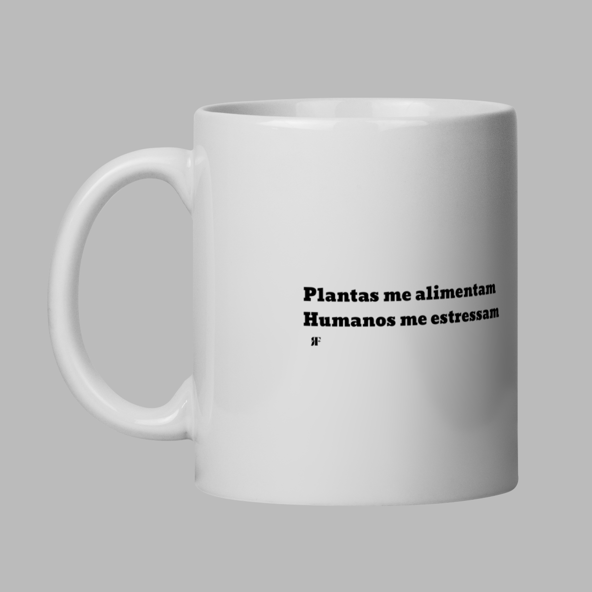 Frase da caneca: " Plantas me alimentam, humanos me estressam"