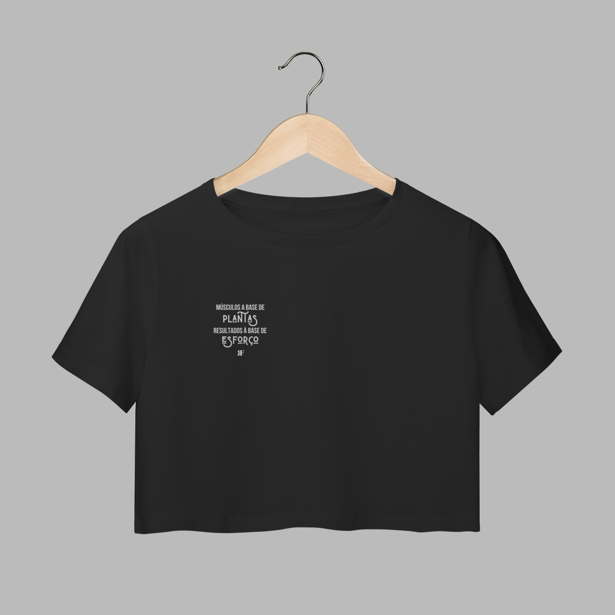 Estampa motivadora com a frase “Músculos à base de plantas, resultado à base de esforço” – perfeita para quem acredita em treino, dedicação e alimentação consciente.