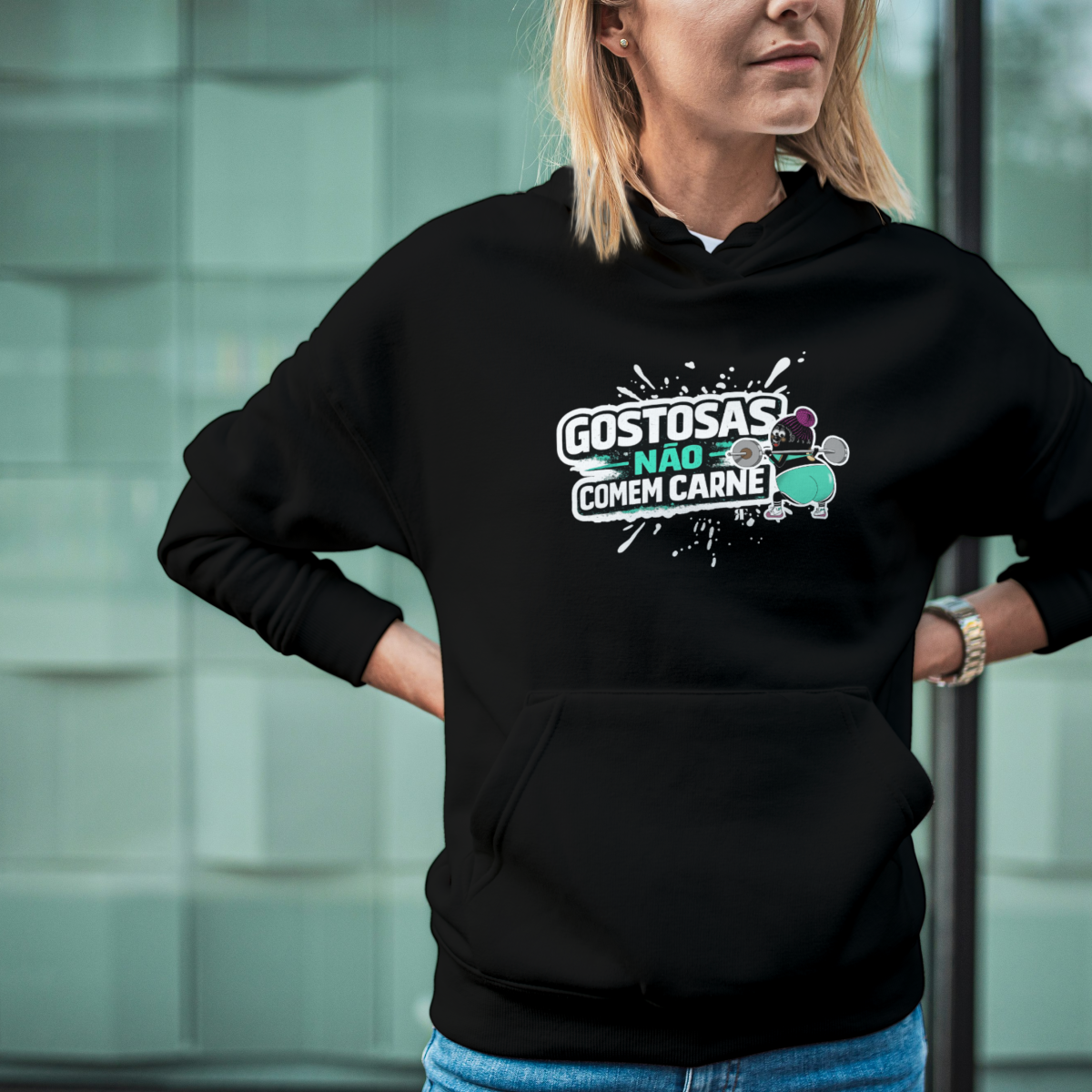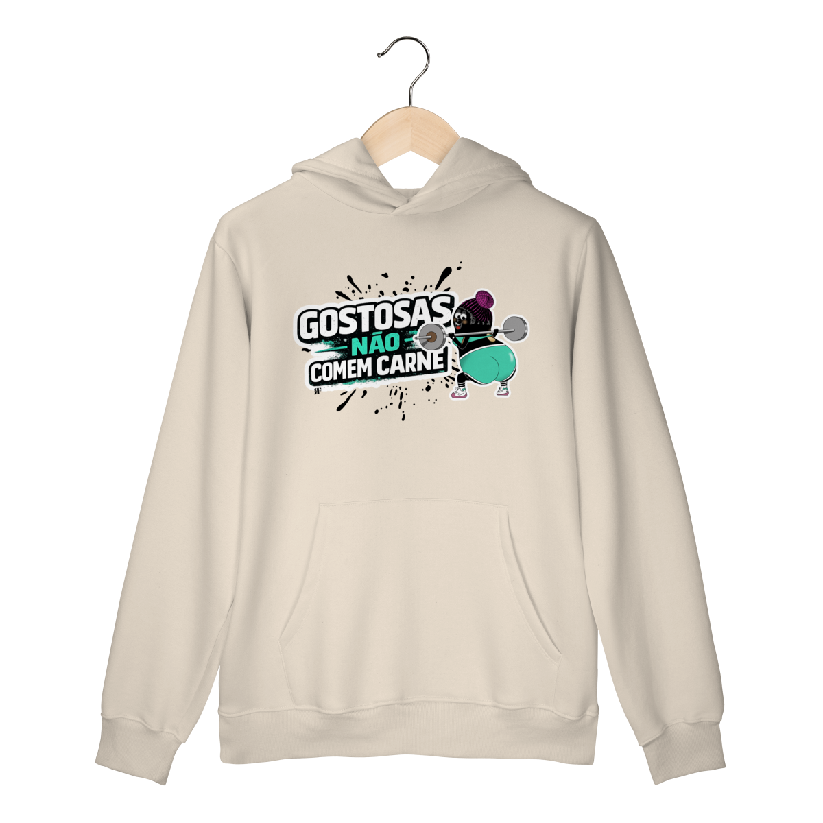 O moletom canguru Feijôa é para quem gosta de estilo com atitude e mensagem. Com a estampa exclusiva “Gostosas não comem carne”, a peça une humor, identidade vegetal e personalidade forte em um design marcante.