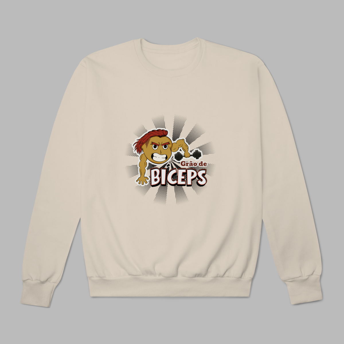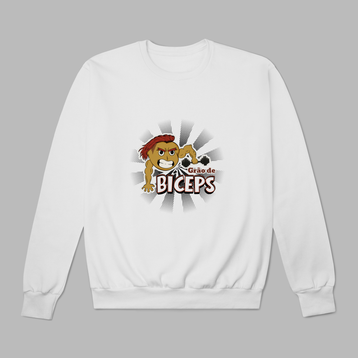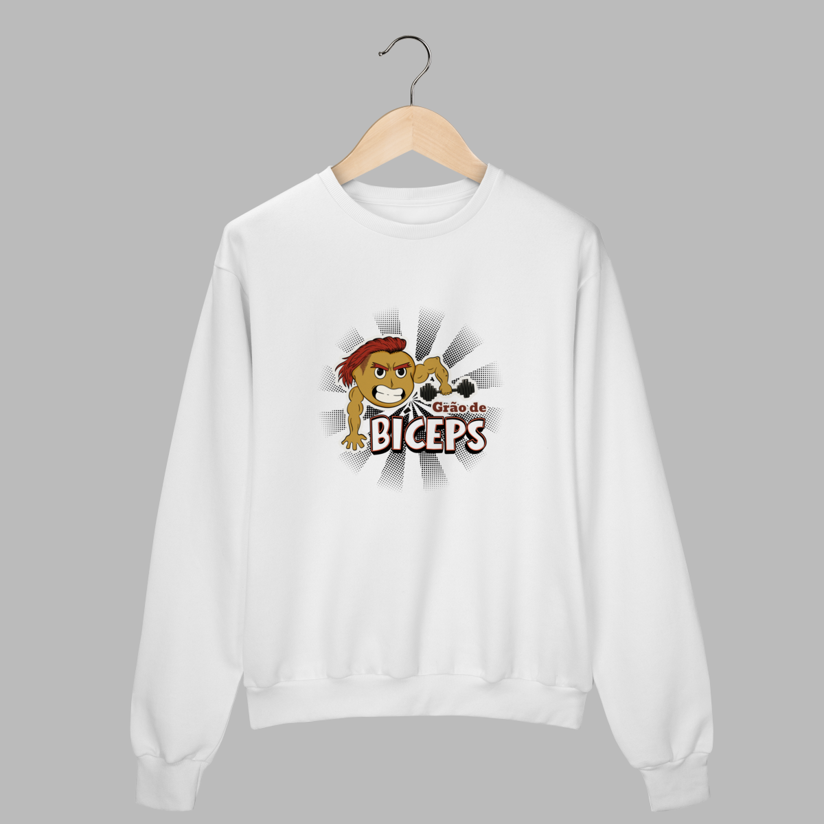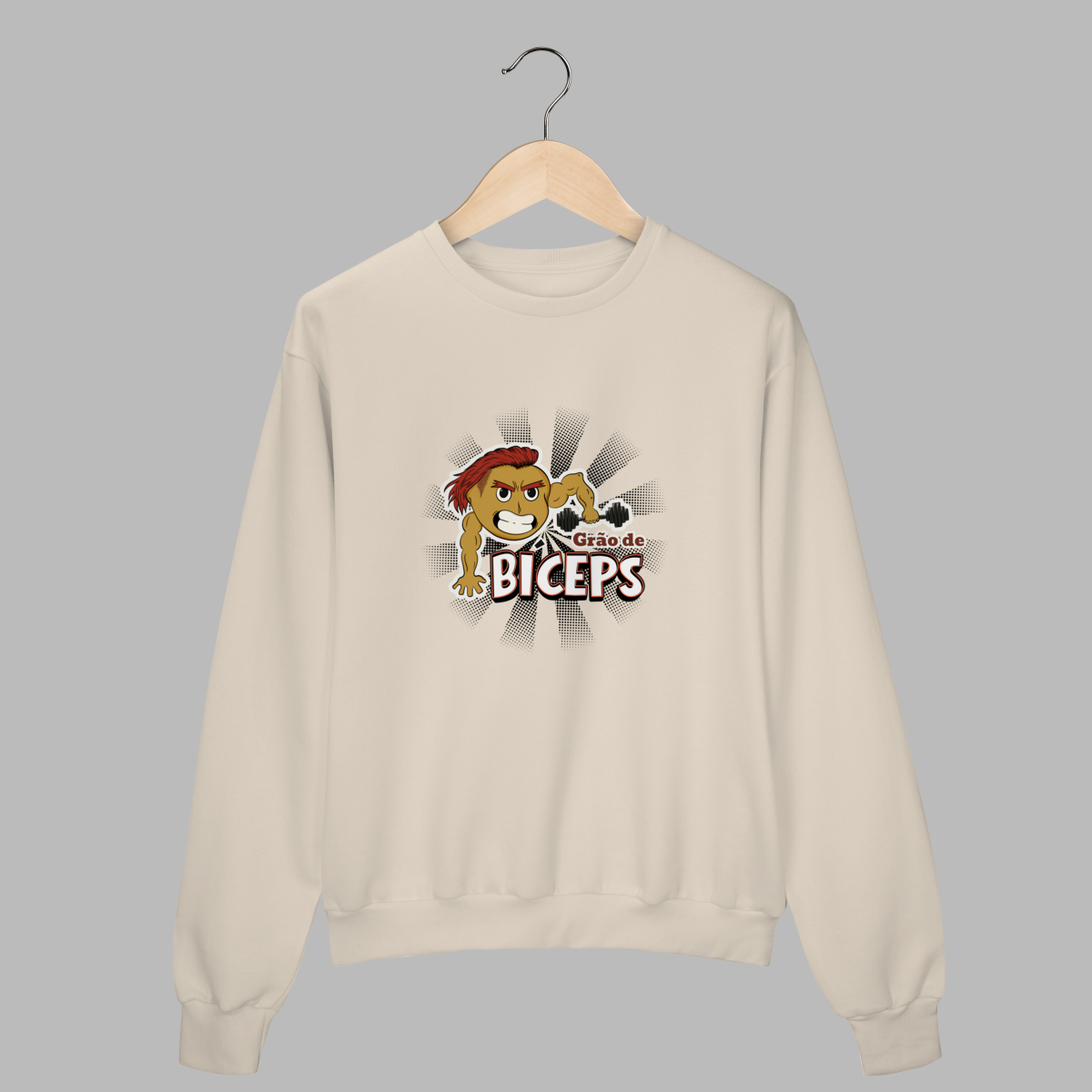 O moletom com a estampa “Grão de Bíceps” une aconchego e atitude. Com o grão-de-bico mais forte do que nunca, cheio de atitude e estilo, mostrando que dá pra ter força, humor e propósito no mesmo look tornando essa peça perfeita para dias frios ou para quem gosta de treinar e viver com conforto e propósito. Quentinho, macio e com design vegano divertido, é ideal para quem quer vestir impacto e autenticidade até nos dias mais relax.